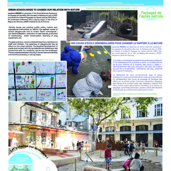 Article réalisé pour le Collectif « Paysage de l’Après Pétrole » sur la déminéralisation et le verdissement des cours d’école pour le bien être des élèves et de la biodiversité. A lire...